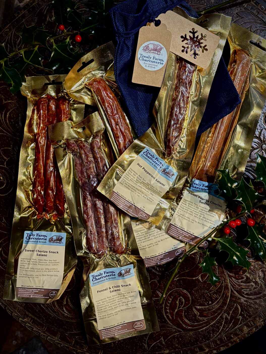 Seasonal Snacking Stocking – choose any 5 items from our regular salami, chorizo and snacking salami, all packed into a decorative Santa Sack for Christmas gifting.